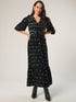 Eddie Black Cord Embroidered Polka Smock Maxi Dress