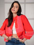 Florence Coral Red Embroidered Easy Throw-On Jacket