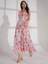 Florrie Blue and Orange Floral Print Midi Dress