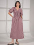 Isla Burgundy And Pink Stripe Short Sleeve Linen Blend Dress